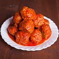 This meat are Neapolitan rolls of beef stuffed with raisins, pine nuts, garlic, parsley and pecorino cheese named “braciole”.