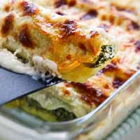 A successful recipe formed by rolled rectangles of egg pasta dough (how to make pasta), filled with ricotta, spinach, parmigiano cheese, spices, and covered with bechamel.